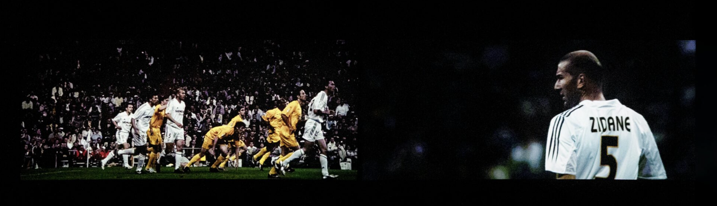 Assembled from footage shot by seventeen synchronized cameras placed around the stadium, the film captures Zidane from multiple angles and remains fixed on him even when the central action of the match shifts elsewhere. By splicing in footage from the live television broadcast, Gordon and Parreno challenge viewers’ perception of spectacle and modern celebrity.