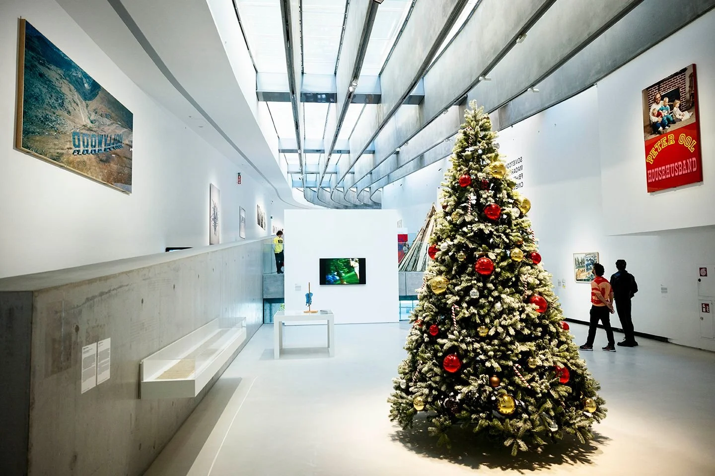 Built around five exploratory zones—Play, Make, Find, Read, and Watch—Show & Tell encourages young people to approach contemporary art with creativity and imagination. Where Cas Holman’s Critter Party (2024) offers a sculpture to touch, climb on, and modify, Caroline Kent’s colorful abstractions inspire kids to create their own collages to project in the gallery. A porthole wall reveals a trove of hidden surprises, from a miniature Spoonbridge and Cherry to a family of funky creatures. And in the comfy “Watch” zone, a varied selection of short films prompts curiosity and conversation.